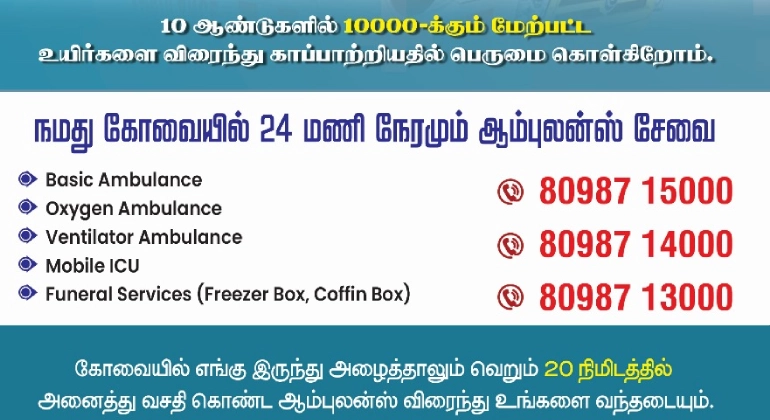 Contact us at [No 47A, Sivanandapuram, Sathy main road, Coimbatore- 641035] for immediate assistance or to schedule ambulance services. Thank you for choosing AVP Ambulance Service, where care meets compassion.